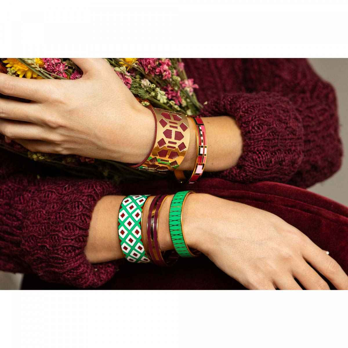 Sublime Manchette Banjul finition dorée et simili cuir bordeaux - BRSH600BXjgv. Avec la collection , Mes-bijoux propose une gamme de bracelets colorés à cumuler entre eux pour raviver votre look. Ce bijou est garanti 12 mois.