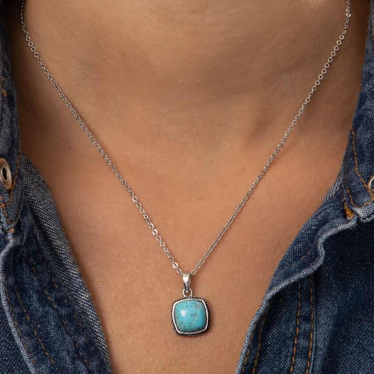 Optez pour ce magnifique pendentif serti d'une turquoise de forme carré forgé en argent massif à porter sans modération. Une chaîne en argent 925 vous sera offerte avec ce pendentif.