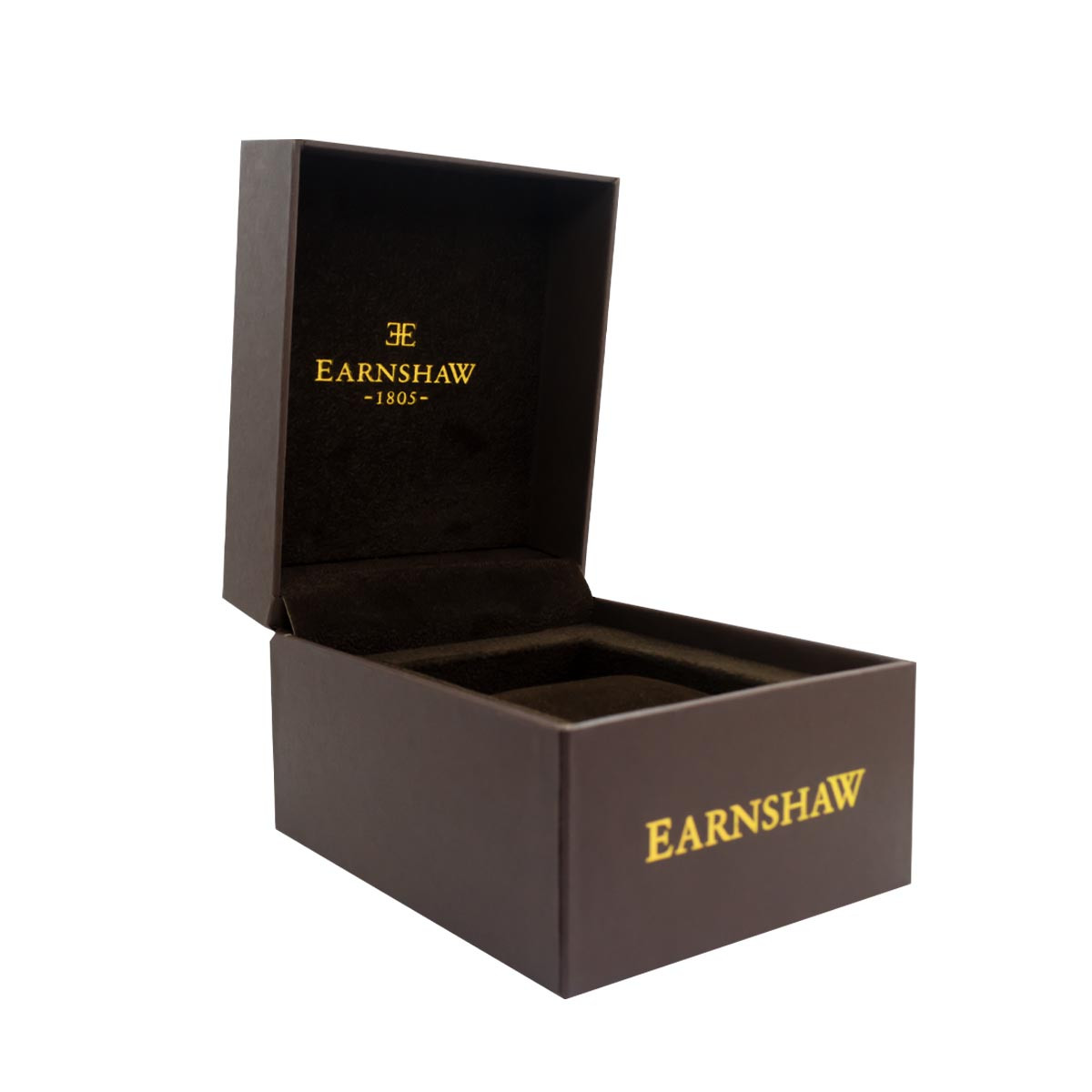 La Maison horlogère Thomas Earnshaw vous présente son modèle ES-8063-06, de la collection Longitude Shadow. Cette marque s'inspire des navigateurs qui voyagent en mer et qui utilisent des instruments pour se repérer au fil du temps. Mais elle s'inspire également des créations du célèbre horloger Thomas Earnshaw surnommé le "père du chronomètre moderne". Cette montre est équipée d'un boîtier de forme ronde, de 44 mm de diamètre pour 14 mm d'épaisseur. Ce sont des dimensions parfaites pour un poignet masculin recherchant un style élégant. Ce boîtier est en acier inoxydable, recouvert de PVD en or rose. Le cadran, quant à lui, est protégé par un verre minéral, qui vous assurera une bonne protection contre les chocs et rayures. Une couronne remontoir est présente au niveau des trois heures, pour que vous puissiez régler la montre de manière simple. Son fond de boîte vissé et transparent vous assurera une étanchéité de 5 atmosphères, mais également une vue remarquable sur la masse oscillante du mécanisme.