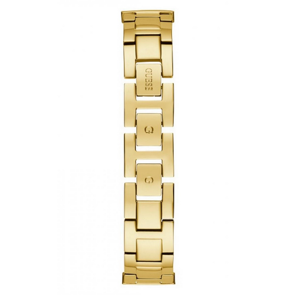 Boîtier acier doré brillant avec cristaux, cadran doré pailleté, bracelet acier doré brillant avec cristaux, G-Link, étanche 3 ATM.