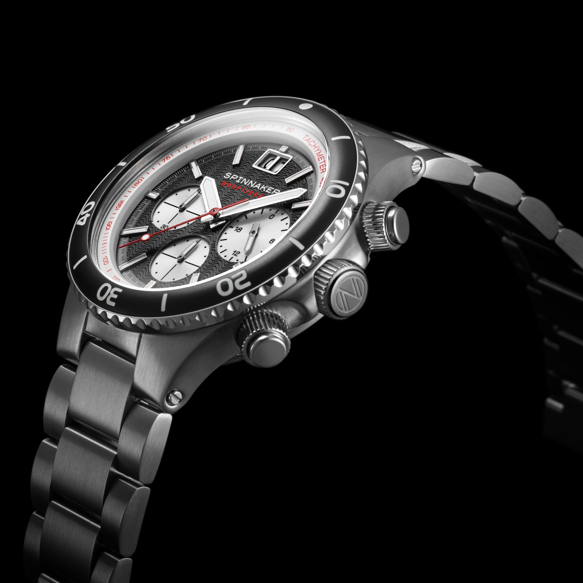 Spinnaker – HYDROFOIL CHRONO – SP-5086-11 – Montre homme – Mouvement chronographe Méca-Quartz Japonais avec date – Boitier rond acier inoxydable – Cadran noir – Bracelet acier inoxydable - Verre saphir