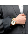 La montre Eolia automatique dorée possède un cadran coeur ouvert, dans lequel on pourra apercevoir les rouages du mécanisme. Le cadran blanc aux arabesques florales a fait la renommée de cette collection best seller.
